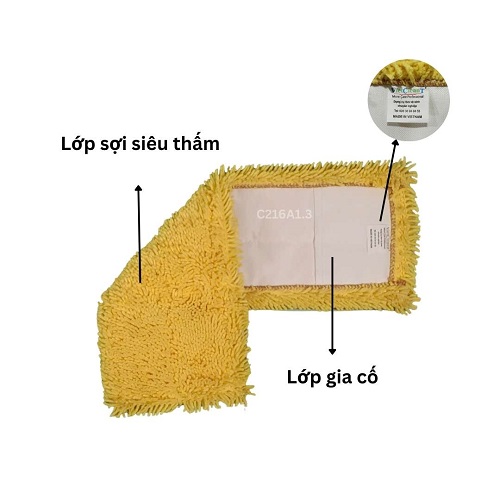 - Lớp gia cố: thường được đặt ở phía dưới lớp sợi siêu thấm, có chức năng chính là tăng cường độ bền và độ cứng cho tấm lau. Lớp này thường được làm từ vải không dệt hoặc các sợi tổng hợp khác, giúp tấm lau không bị biến dạng khi sử dụng hoặc giặt.