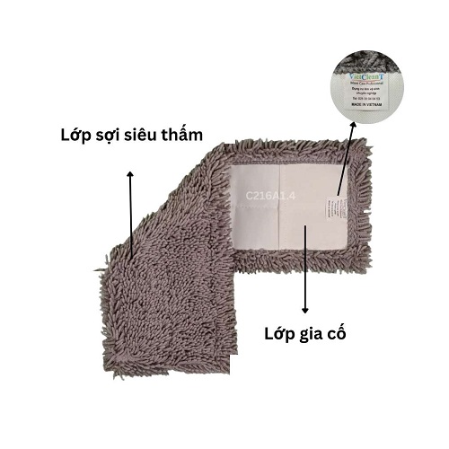 - Lớp gia cố: thường được đặt ở phía dưới lớp sợi siêu thấm, có chức năng chính là tăng cường độ bền và độ cứng cho tấm lau. Lớp này thường được làm từ vải không dệt hoặc các sợi tổng hợp khác, giúp tấm lau không bị biến dạng khi sử dụng hoặc giặt.