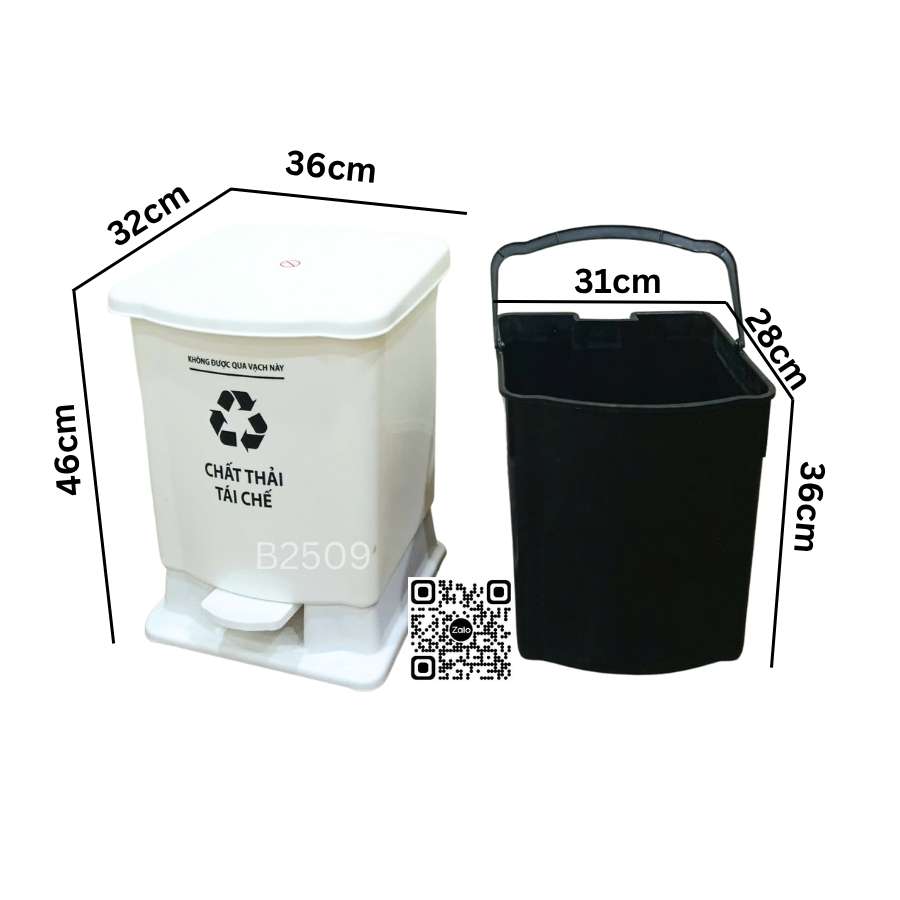 - 100% Tuân Thủ Quy Định: Màu Trắng Chuẩn – Dùng cho Chất thải Tái chế không nguy hại (rác sinh hoạt, giấy, bao bì không dính dịch...). Giúp phân loại rác tại nguồn, tránh phạt vi phạm.