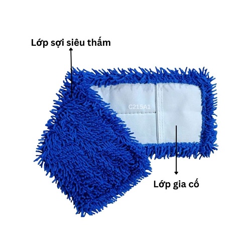 Giẻ lau: Được làm từ sợi Microfiber siêu mịn, có khả năng thấm hút nước và bụi bẩn cực tốt, giúp làm sạch sàn nhà hiệu quả mà không để lại vệt nước